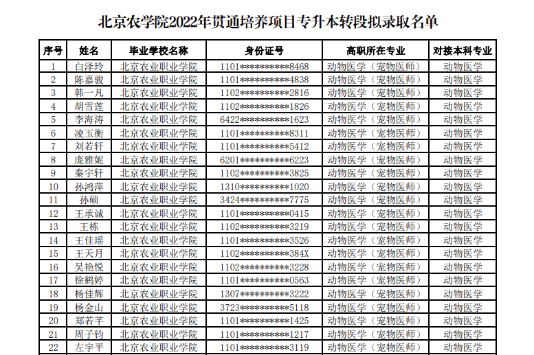 2022年高端技术技能人才贯通培养试验项目专升本转段拟录取人员公示