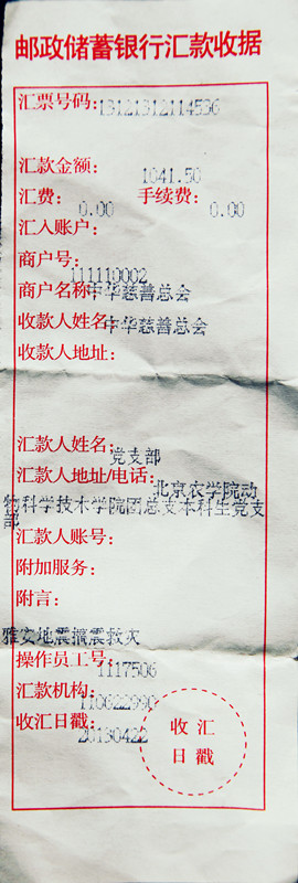 北京时间2013年4月20日早上8点04分,四川省雅安市芦山县发生7.0级地震。灾难无情,人有情。4月22日中午,由皇冠集团99442登录入口团总支、学生会、本科生党支部联合开展的“心系雅安,我们在一起!”爱心募捐活动在教B103顺利展开,本次抗震捐款活动共有200余名动科老师和同学积极参与,共募得现金1041.5元。本科生党支部负责人于当日已将善款汇给中华慈善总会。